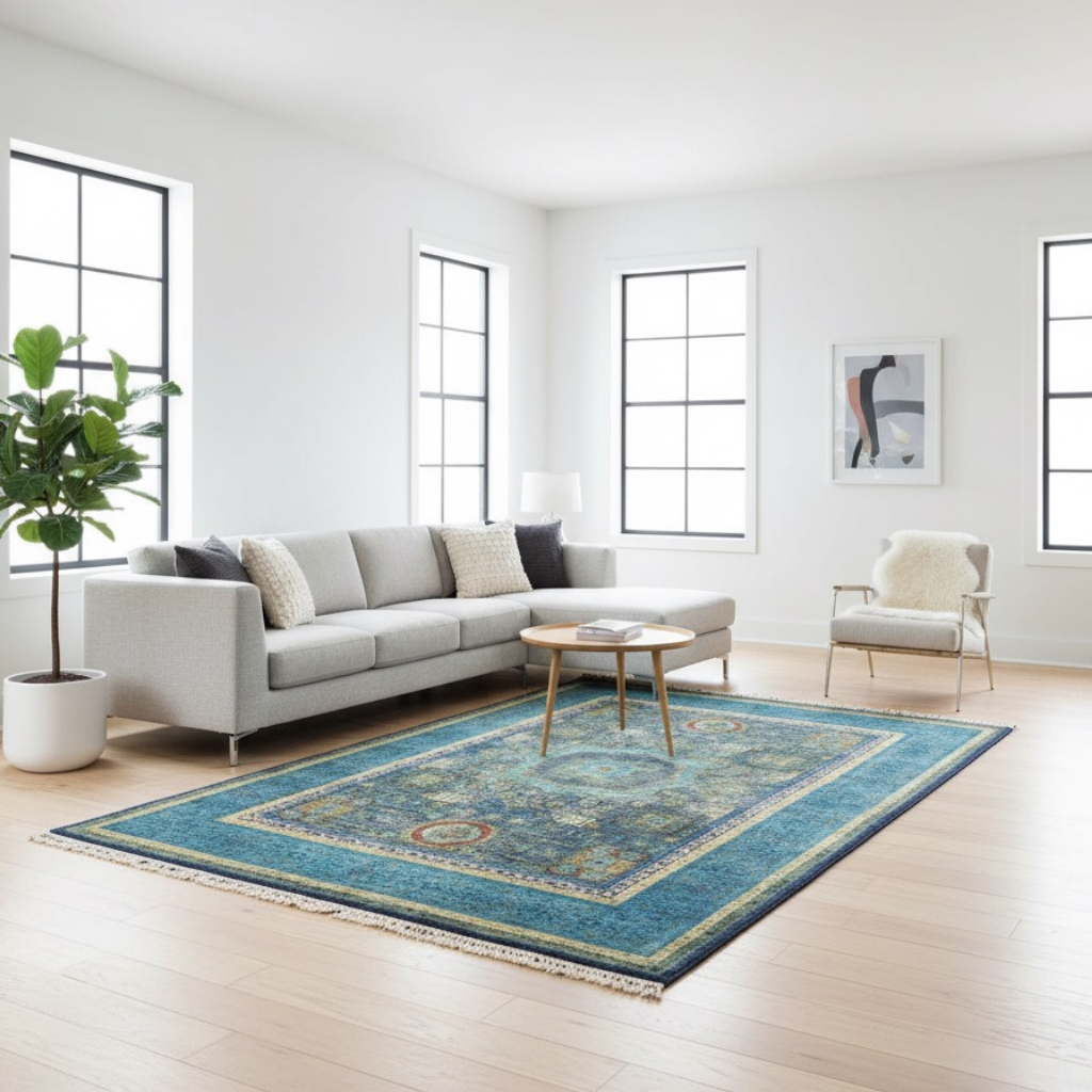 Ideal for living rooms to anchor a sofa + coffee table,bedrooms(half under a full/queen bed),home offices under a desk and chair,dining nooks for 2–4 seats, and kids’ rooms or reading corners. Leave8–12″ (20–30 cm)of floor showing around the rug for a balanced look, and aim to place at least the front legs of seating on the rug to tie the space together.