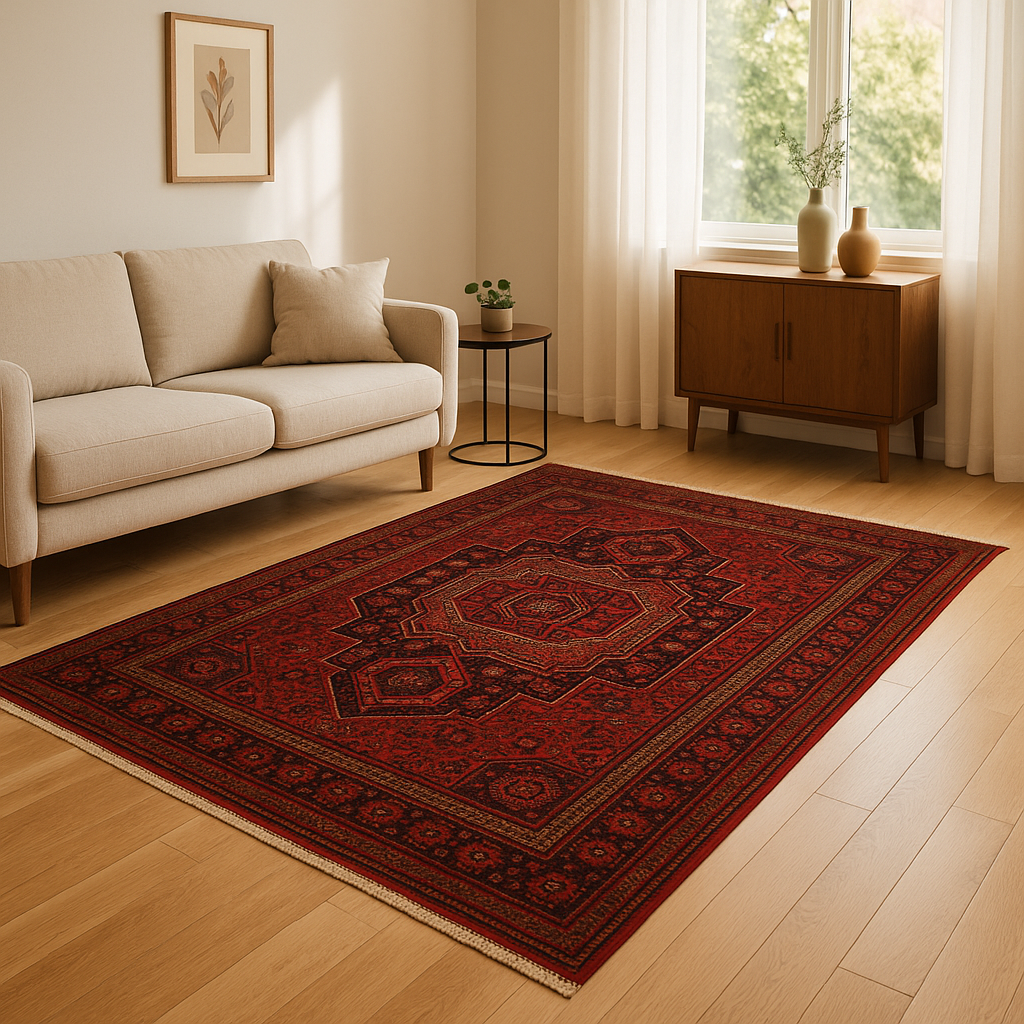 Woven with a cotton foundation (warp and weft) and hand-spun wool pile, these rugs are dyed using natural plant-based (vegetal) dyes, giving them their deep, earthy tones and authentic character. The bold geometric patterns and symmetrical medallions found in Afghan designs reflect centuries of tribal artistry passed down through generations.